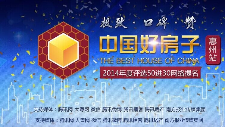 腾讯大粤房产2014年度“中国好房子”的评选,历经一个多月的悉心策划和严格筛选,在“公平、公正、公开”的评审原则下,通过数百万网友的投票、数百位行业智库和业内专家评审以及众多权威机构数据分析、媒体调查等方式,最终遴选出深圳区、广州区、深圳东区、佛山区的十大好房子,其中深圳区的十大好房子具体获奖名单为山招商花园城、金地·鹭湖1号、远洋新干线、运发御景兰庭、恒大国香山、振业天峦、绿景虹湾、天悦南湾、华晖云门、大族河山,深圳东区的具体获奖楼盘为万科双月湾、星河丹堤、碧桂园山河城、海伦堡·爱ME城市、中萃·艳阳下、诚杰壹中心、中梁V城市、弘诚厚园。同时,深圳区于12月12日在华侨城洲际酒店举办了隆重的颁奖礼,为深圳区的十大好房子现场颁奖,成为行业内极具影响力的一次活动。